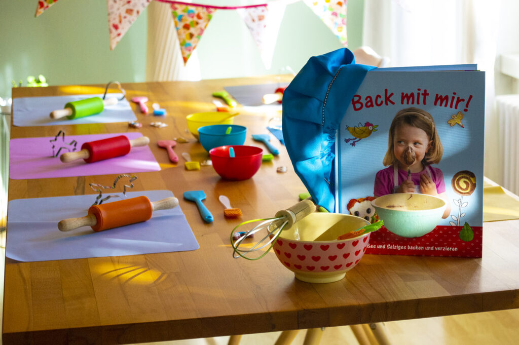 - Deko: Servietten, Stoff-Wimpelkette passend zum Motto, Luftballons, Tischglocke, kleine Schiefertafel zum individuellen Beschriften inkl. Kreidetafelstift