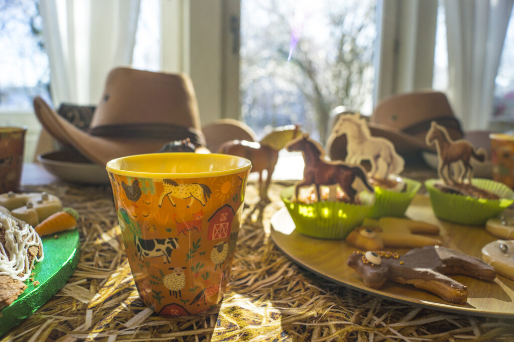 - schönes, wiederverwendbares Rice-Geschirr im Pferdeabenteuer-Look (Becher und Teller)