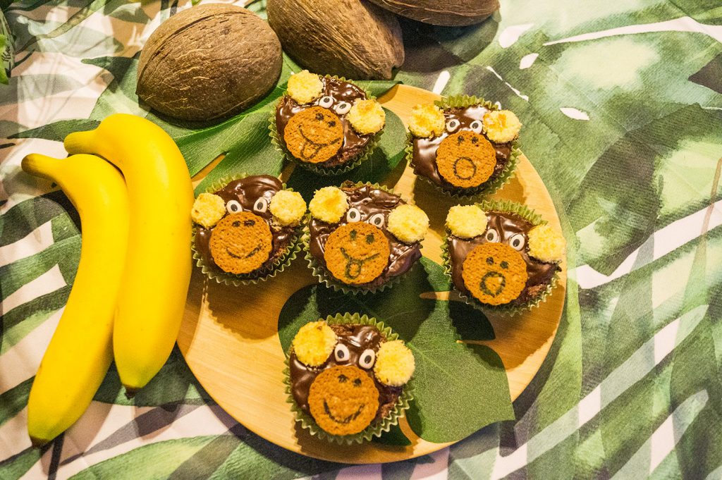 - Backutensilien: Muffin-Picker, Keksausstecher passend zum Motto, Kuchenkerzen