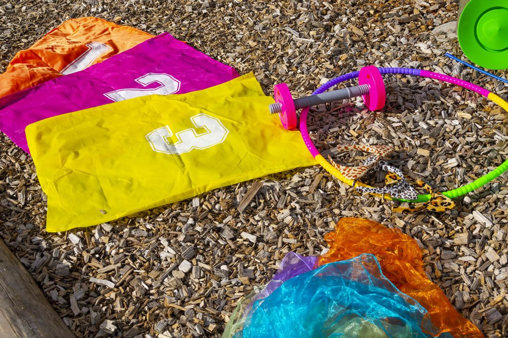 - Spiele: Dosenwerfen, Sackhüpfen und Eierlaufen, farbige Pylonen